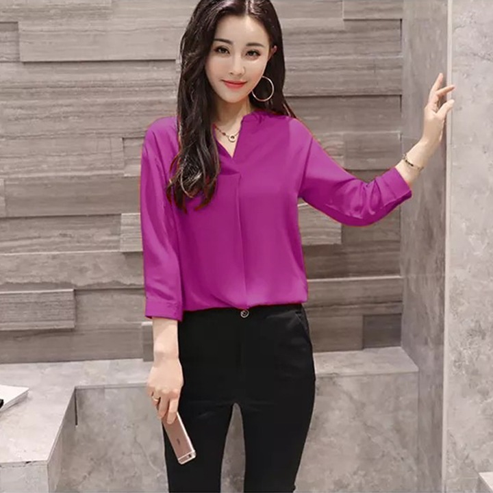 + Áo Sơ Mi Nữ 4116 + Kiểu dáng: Áo tay dài, cổ v,xẻ eo + Chất liệu: cotton nhật + Màu sắc: trắng và tím + Kích thước: Phù hợp cho bạn gái <55kg (tùy chiều cao)