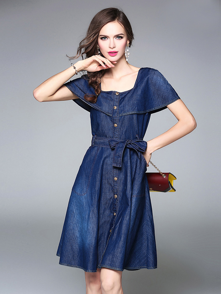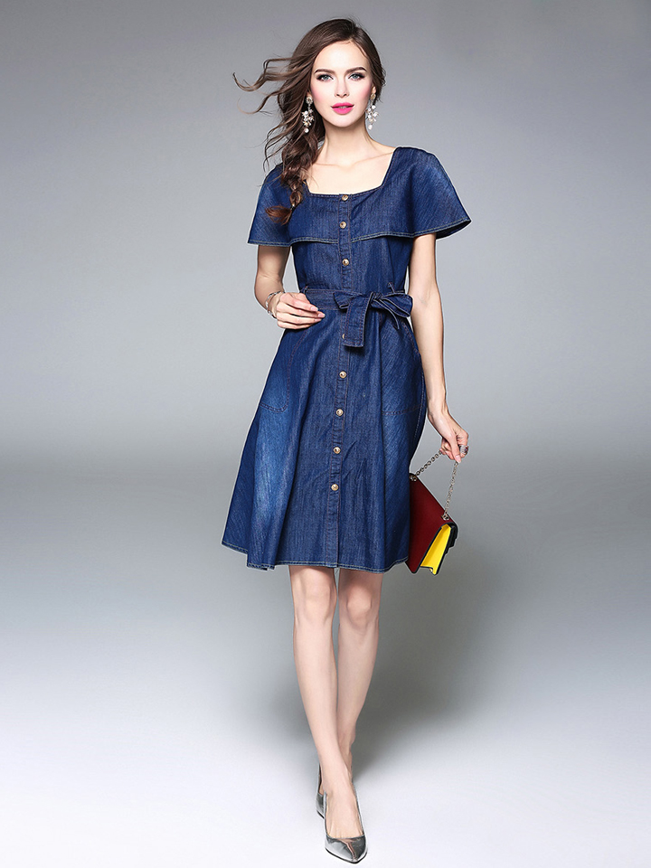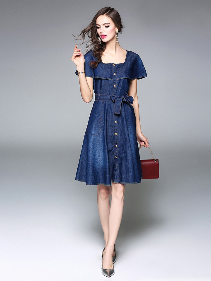 + Đầm Jean Xòe Cổ Vuông 4118